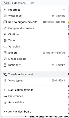 Se stai cercando una traduzione di base e una tantum per un breve documento, la funzione di traduzione integrata di Google Documenti è spesso sufficiente. Ecco un'analisi dettagliata di come tradurre un documento: